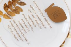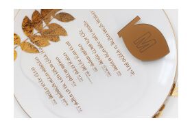 Just the item you need, and it will enhance your Rosh Hashana table! Apple shaped Simanim cards are gorgeous, practical and 100% waterproof! Makes it simple for each member of your table to follow along clearly and easily. Makes the perfect personal or corporate Rosh Hashana gift!
